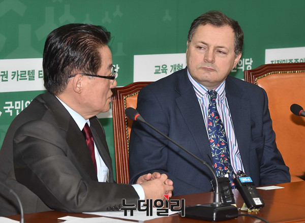 [포토] 대화 하는 국민의당 박지원 대표와 찰스 헤이 주한영국대사