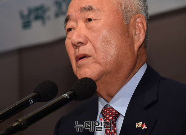 권영해 전 국방부 장관(대통령탄핵기각을위한국민총궐기운동본부 공동대표)이 13일 오후 프레스센터에서 열린 김평우 전 대한변호사협회장의 저서 '탄핵을 탄핵한다' 출판기념 강연회에 참석해 축사하고 있다.