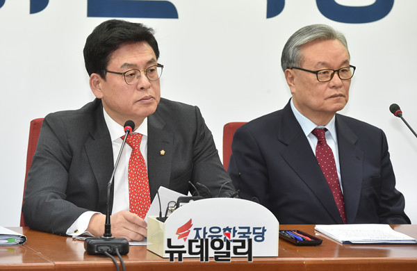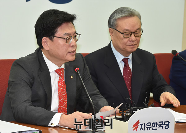정우택 자유한국당 비대위원장이 14일 오전 서울 여의도 당사에서 열린 비상대책위원회의에서 발언을 하고 있다.