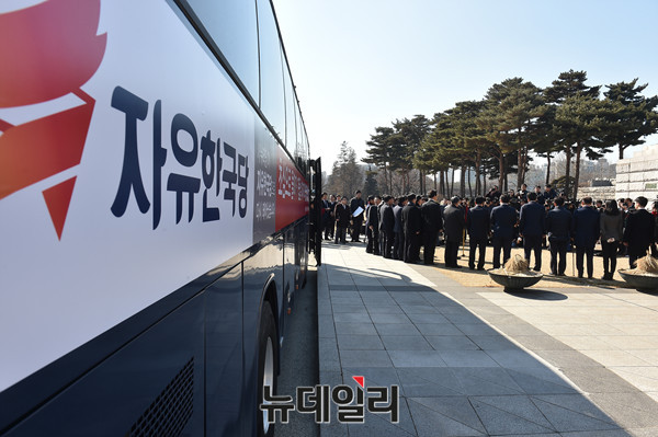인명진 자유한국당 비상대책위원장이 14일 국회에서 열린 '책임과 미래 국민속으로' 버스 출정식에 참석해 발언을 하고 있다.
