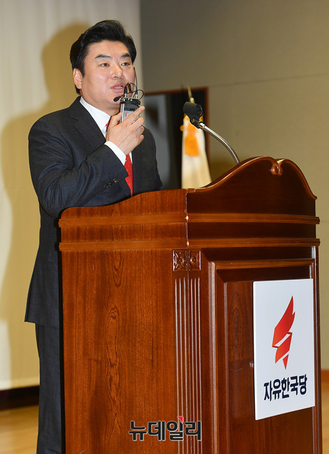 원유철 전 원내대표가 14일 오후 수원 권선구 경기종합노동복지회관 대강당에서 열린 자유한국당 '보수의 힘으로! 경기 당원과 함께' 당원연수에서 발언을 하고 있다. (경기 수원=뉴데일리 정상윤 기자)