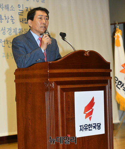 대선출마를 밝힌 자유한국당 안상수 의원이 14일 오후 수원 권선구 경기종합노동복지회관 대강당에서 열린 자유한국당 '보수의 힘으로! 경기 당원과 함께' 당원연수에서 발언을 하고 있다. (경기 수원=뉴데일리 정상윤 기자)