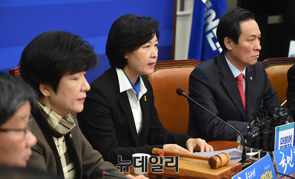 추미애 더불어민주당 대표가 15일 오전 국회에서 열린 최고위원회의에 참석해 발언을 하고 있다.