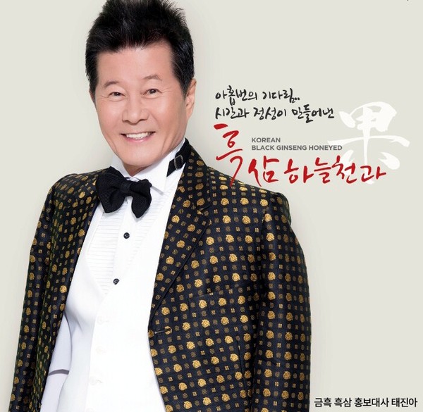 이번에 공개된 ‘흑삼 하늘천과’ 홍보 시안에서 태진아는 레드 재킷과 흰색 와이셔츠, 검은색 나비넥타이 등으로 긍정적이면서도 건강한 이미지를 마음껏 발산했다. 흑삼은 인삼을 9번 찌고 말려 강한 사포닌의 힘으로 깨어난 검은 빛의 삼을 일컫는다.