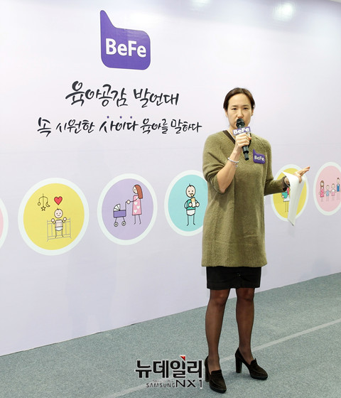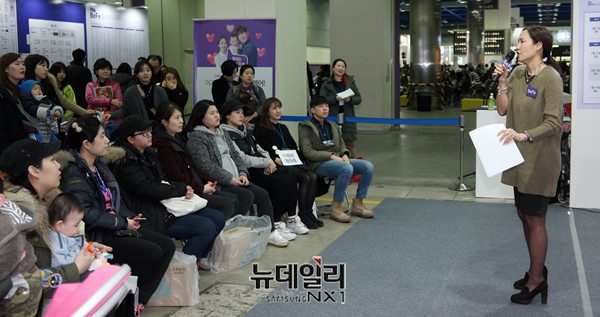 방송인 강주은이 16일 오전 서울 강남구 코엑스에서 열린 제 31회 베페 베이비페어 '육아 공감 발언대-속 시원한 사이다 육아를 말하다' 행사에 참석해 강연하고 있다.