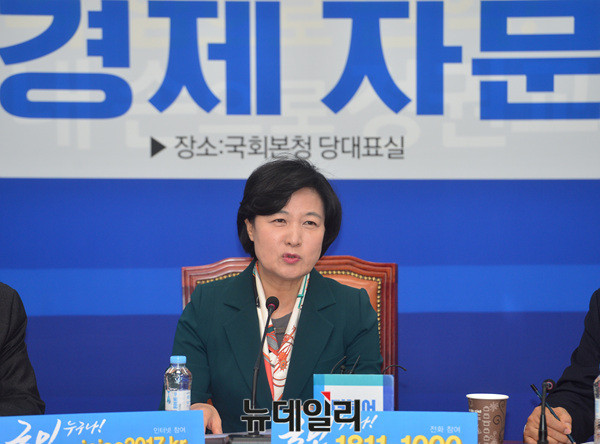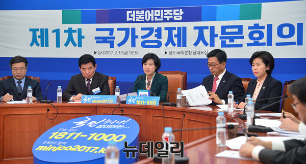추미애 더불어민주당 대표가 17일 오전 국회 더불어민주당 회의실에서 열린 제1차 국가경제 자문회의에서 모두 발언하고 있다.