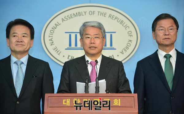 김동철 국민의당 의원이 17일 오전 국회 정론관에서 기자회견을 갖고 있다. 이날 김 의원은 대통령 임기 단축을 전제한 개헌안을 발표했다.
