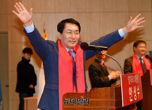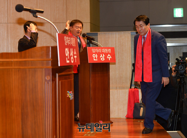 안상수 자유한국당 의원이 21일 오전 인천 연수구 인천경제자유구역청 대강당에서 대선출마 선언을 하고 있다. 안 의원은 이날 출마선언문을 통해 "일자리 대통령이 되겠다"며 "300만개 일자리를 창출하고, 전국에 '일자리 도시' 건설을 약속한다"고 말했다. (인천 송도=뉴데일리 정상윤 기자)