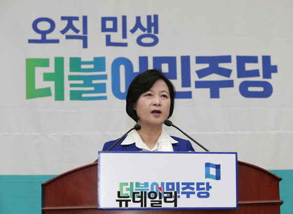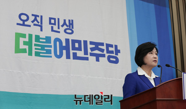 더불어민주당 추미애 대표가 21일 오전 국회에서 열린 긴급 의원총회에서 모두발언을 하고 있다.