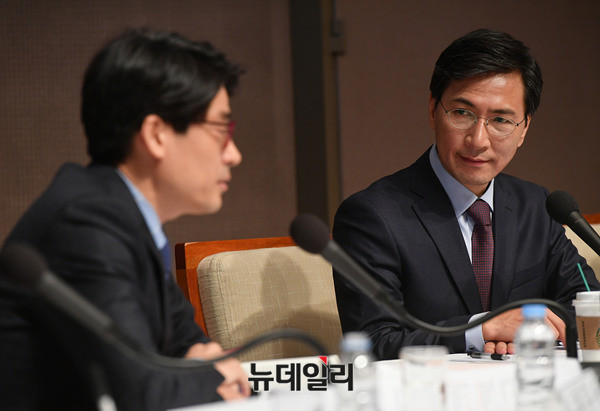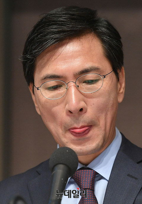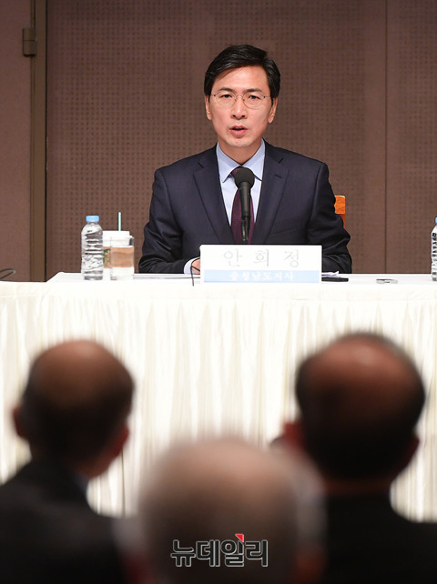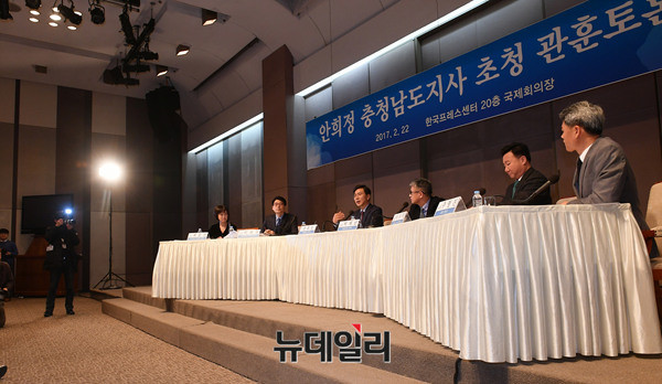 안희정 충남지사가 22일 오전 한국프레스센터 국제회의장에서 관훈토론회에 초청 돼 질문에 답하고 있다. 안 지사는 "탈당 후 출마는 내 사전에 없다"고 말했다.