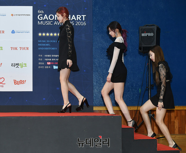 트와이스가 22일 오후 서울 송파구 잠실실내체육관에서 열린 '제6회 가온차트뮤직어워즈(GAONCHART Music Awards2016)'에 앞서 포토타임을 갖고 있다. 올해 6회를 맞은 가온차트 시상식은 가온차트에서 집계한 데이터(디지털 음원, 음반 판매량)를 바탕으로 지난 2016년 한 해 동안 활약한 곡과 앨범에 올해의 가수상을 수여한다. 이날 시상식은 엠넷과 네이버V라이브를 통해 생중계 된다.