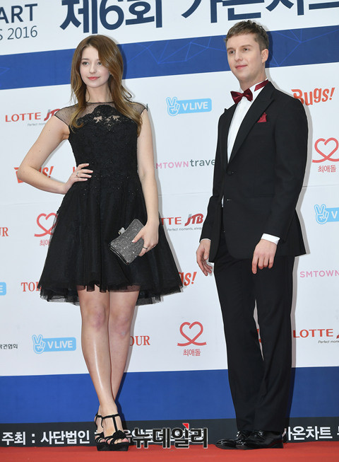 안젤리나 다닐로바와 줄리안이 22일 오후 서울 송파구 잠실실내체육관에서 열린 '제6회 가온차트뮤직어워즈(GAONCHART Music Awards2016)'에 앞서 포토타임을 갖고 있다. 올해 6회를 맞은 가온차트 시상식은 가온차트에서 집계한 데이터(디지털 음원, 음반 판매량)를 바탕으로 지난 2016년 한 해 동안 활약한 곡과 앨범에 올해의 가수상을 수여한다. 이날 시상식은 엠넷과 네이버V라이브를 통해 생중계 된다.
