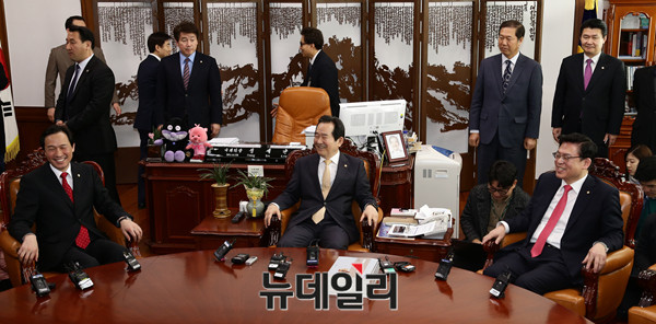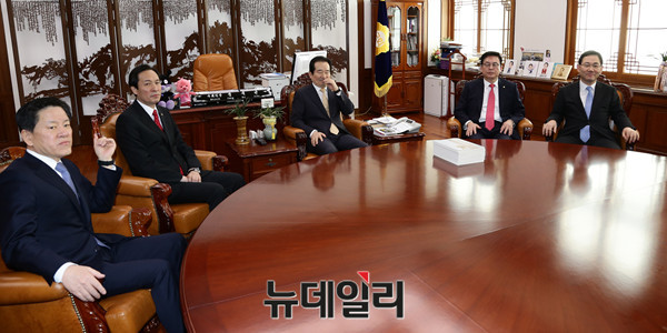 여야 4당 원내대표와(더불어민주당 우상호 원내대표, 자유한국당 정우택 원내대표, 국민의당 주승용, 바른정당 주호영 원내대표) 정세균 의장이 23일 오전 국회에서 특검 수사기간 연장 논의를 위한 회동을 갖고 있다.