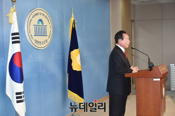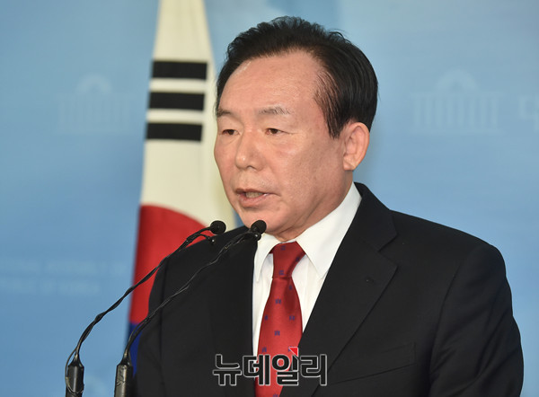 대선출마 선언을 한 자유한국당 이인제 전 최고위원이 24일 오전 국회 정론관에서 '박근혜 대통령 탄핵 반대 및 특검연장 반대' 기자회견을 갖고 있다.