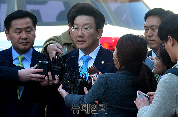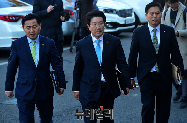 권성동 국회 탄핵소추위원장이 27일 오후 서울 종로구 헌법재판소 대심판정에서 열린 '박근혜대통령 탄핵심판사건 최종변론'에 출석하고 있다.