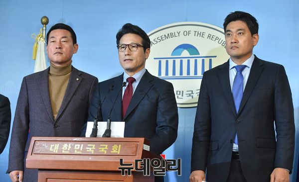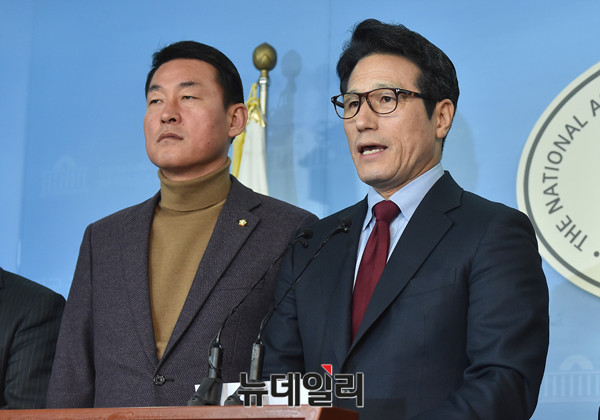 정병국 바른정당 대표가 27일 오후 국회 정론관에서 야당에서 주장하고 있는 황교안 대통령권한대행 탄핵관련 발언을 하고 있다.