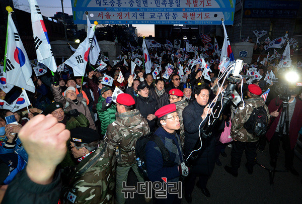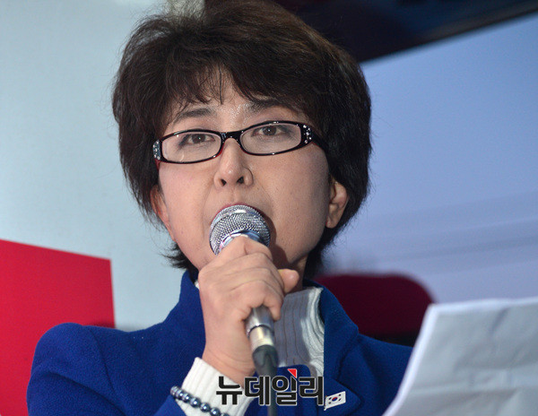 정미홍 전 KBS아나운서가 27일 오후 서울 종로구 헌법재판소 일대에서 열린 '박근혜대통령 탄핵무효' 기자회견에 참석해 헌법재판소의 탄핵심판 무효를 주장했다. 이날 정 전 아나운서는 "헌법재판소의 최종변론은 반드시 필요한 증거 마저 채택을 거부한 심판이므로 원인 무효"라고 말했다. 헌법재판소는 이날 오후 2시부터 대심판정에서 탄핵심판 최종변론을 진행하고, 최종선고기일은 추후 지정 할 예정이다.