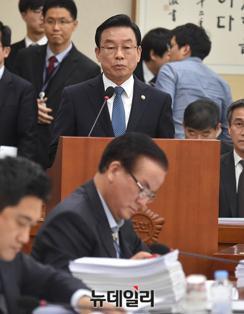 박인용 국민안전처 장관이 28일 오전 국회 법제사법위원회 전체회의 법안심사에 참석해 업무보고를 하고 있다.