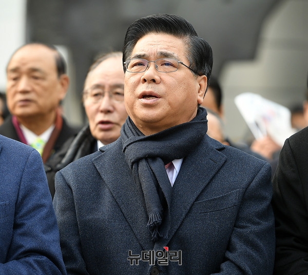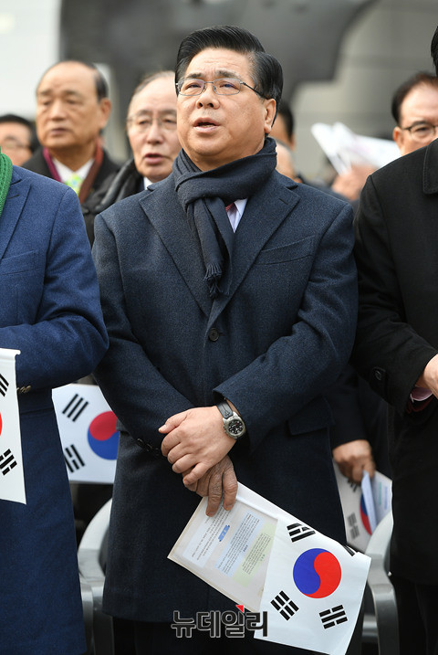 이영훈 한기총 대표회장이 1일 오전 세종로사거리에서 열린 3.1만세운동 구국기도회에서 진리와 자유를 주제로 희망의 메시지를 전하고 있다.