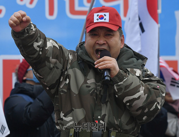 박근혜 대통령에 대한 탄핵 기각 운동을 주도하고 있는 정광택 '대통령 탄핵 기각을 위한 국민총궐기 운동본부(탄기국)' 중앙회장이 3월 1일 서울 세종대로 일대에서 '15차 태극기집회'를 열고 애국충정의 마음으로 모인 시민들을 격려하는 개회사를 낭독했다.