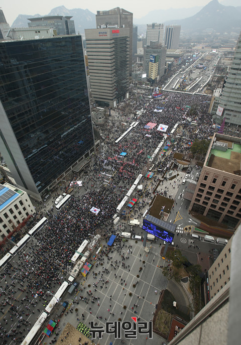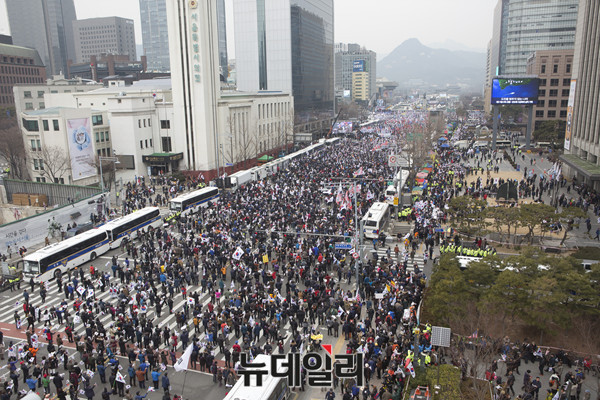 이날 오후 2시부터 시작되는 집회는 오후 5시쯤 부터 '탄핵 원천 무효' 등의 구호를 외치며 청와대 및 헌법재판소 방면으로 가두행진을 이어 갈 예정이다. (사진=공동취재단)
