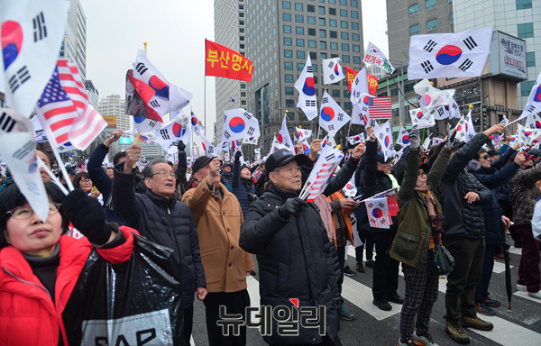 이날 집회에는 주최측 추산 500만 명이 세종대로를 중심으로 대한문, 서울광장, 숭례문 일대까지 태극기와 성조기를 흔들면서 "탄핵무효","탄핵각하"를 외쳤다.
