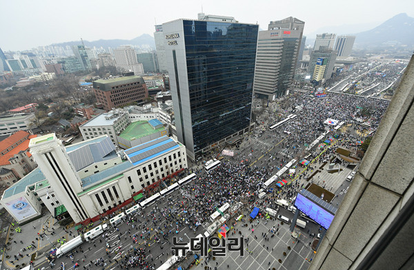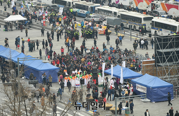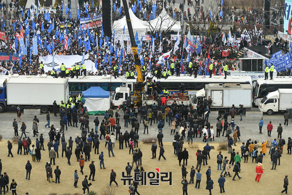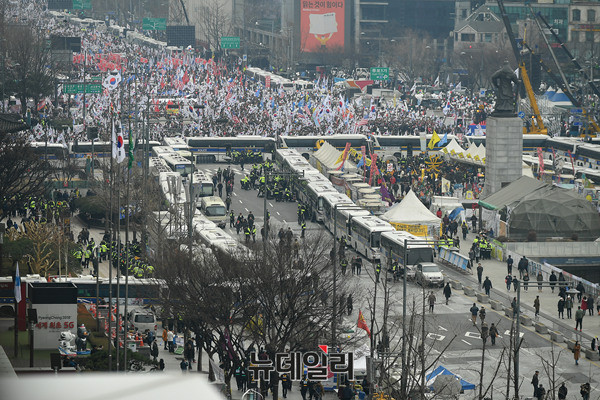 박근혜정권퇴진비상국민행동은 탄기국과 애국단체의 3.1절 대규모 태극기 집회에 대응해 광화문 광장에서 촛불집회를 이어갔다. 경찰은 광화문 광장을 중심으로 열리는 촛불집회와 충돌을 방지하기 위해 경찰버스로 차벽을 세워 충돌을 막았다.