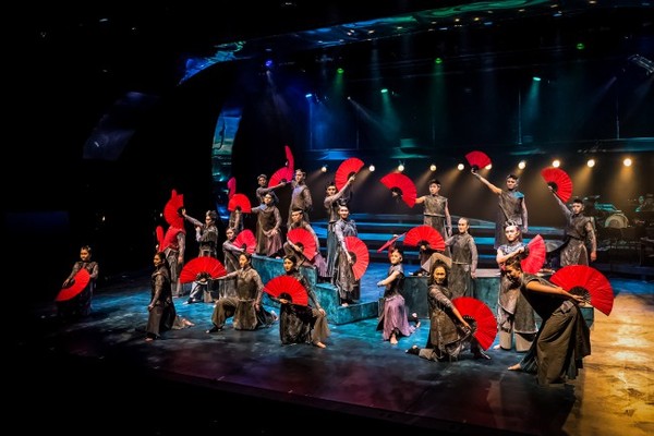 '적벽'의 강한 공연성은 부채 하나의 오브제로 완성하는 화려한 장면 연출이다. 황금색과 붉은색의 부채를 활용한 장면 전환과 마스게임처럼 부채를 든 배우들의 군무는 판소리 뮤지컬의 색다른 매력을 느낄 수 있다.