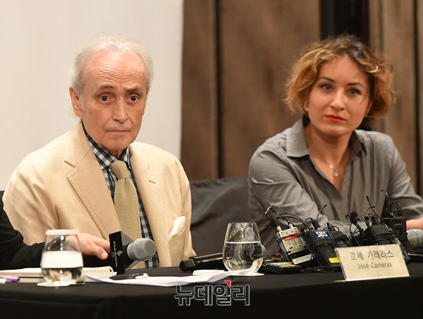 테너 '호세 카레라스(Jose Carreras)'와 소프라노 '살로메 지치아'가 2일 서울 종로구 포시즌호텔서울에서 기자간담회를 갖고 오는 4일 예술의전당 콘서트홀에서 '음악과 함께한 인생'을 주제로 열리는 마지막 월드 투어 공연에 관한 소감을 밝혔다.