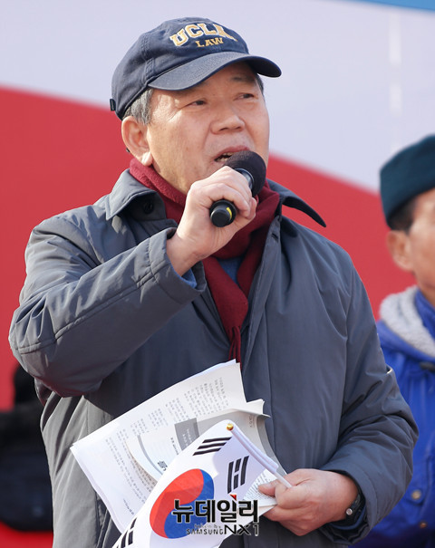“촛불을 주도하는 세력은 단 한 사람도 대한민국의 국기 태극기를 흔들지 않는다. 촛불을 주도하는 세력은 선택하라! 우리와 함께 태극기를 들고 어둠에서 나오든가 아니면 붉은 촛불을 들고 정신적 고향 북한으로 돌아가라.”