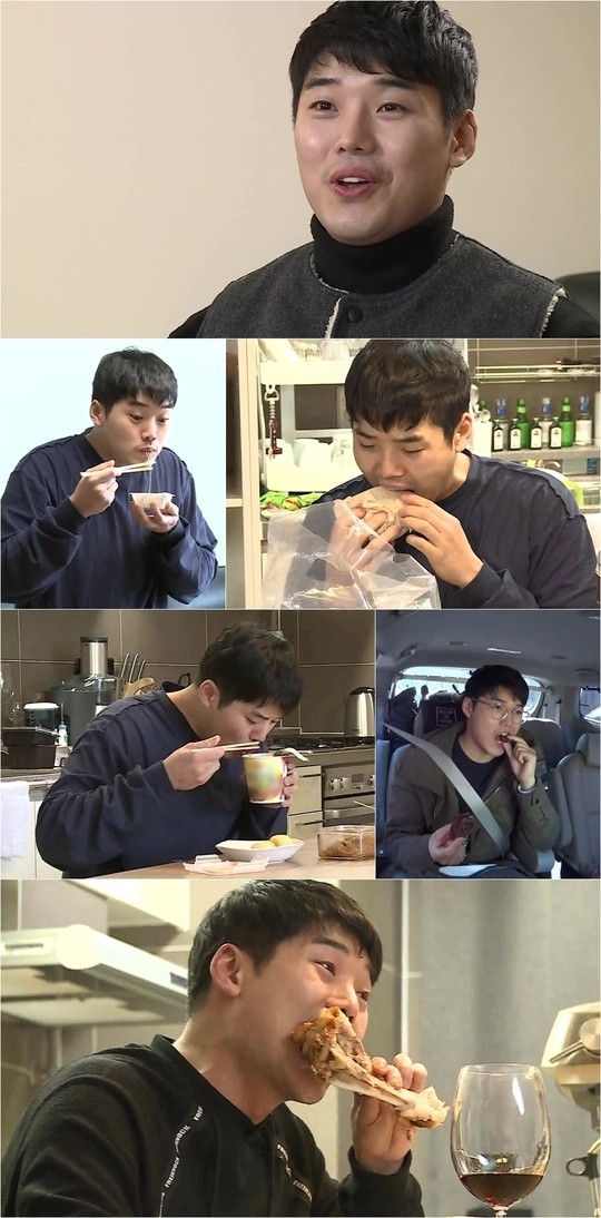 권혁수가 쉴 틈 없이 먹는 신개념 '생활 버닝' 다이어트를 보여준다.3일 방송될 MBC '나 혼자 산다' 195회에서는 권혁수가 일상생활 속에서 끊임 없이 다이어트를 하는 모습이 공개된다.권혁수는 먹은 만큼 몸을 움직이는 자신의 다이어트 비법을 공개하며 "먹으면서 기분 좋고 죄책감은 안 들고~"라고 설명했다. 무엇보다 다이어트로 인해 입도 몸도 한시도 쉬지 않는 바쁜 하루를 보냈다고.권혁수는 공개된 스틸 속 모습처럼 집에서도, 차 안에서도 언제 어디서나 먹을 것을 손에서 놓지 않고 있다. 그는 샌드위치-바나나-낫토-젤리 등 아침에만 7가지에 달하는 음식을 먹으며 음식물 무한 흡입의 진풍경을 보여줄 예정이다.특히, 권혁수는 족발은 콜라겐 보충용으로, 맥주는 소화 촉진을 위한 용도로 먹으며 자기 최면 다이어트까지 했다는 전언이다. 또, 생활 속옷-취침 속옷을 분리해 입는 습관과 옷을 일부러 뒤집어 입는 독특한 취향을 고백한다.권혁수의 다이어트와 옷에 관한 특이한 습관은 3일 방송되는 '나 혼자 산다'를 통해 확인할 수 있다.['나 혼자 산다' 권혁수, 사진=MBC]