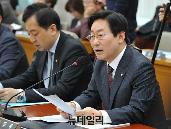 박범계 더불어민주당 법사위 간사가 2일 오후 국회에서 열린 법제사법위원회 전체회의에서 발언하고 있다.