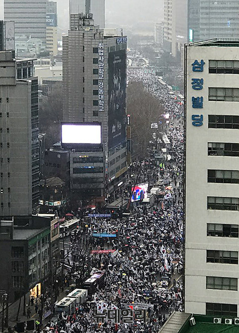 박근혜정권퇴진비상국민행동은 탄기국과 애국단체의 3.1절 대규모 태극기 집회에 대응해 광화문 광장에서 촛불집회를 이어갔다. 경찰은 광화문 광장을 중심으로 열리는 촛불집회와 충돌을 방지하기 위해 경찰버스로 차벽을 세워 충돌을 막았다.