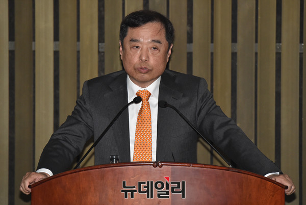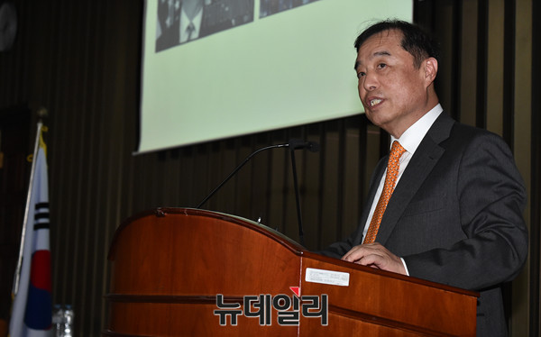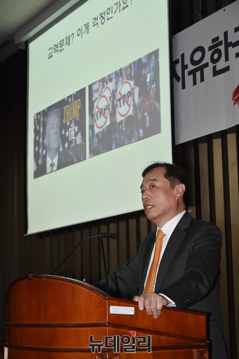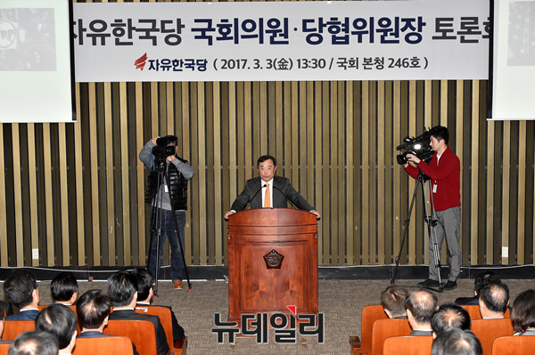 김병준 국민대학교 교수가 3일 오후 국회에서 열린 자유한국당 당협위원장 연석토론회에서 강연을 하고 있다.