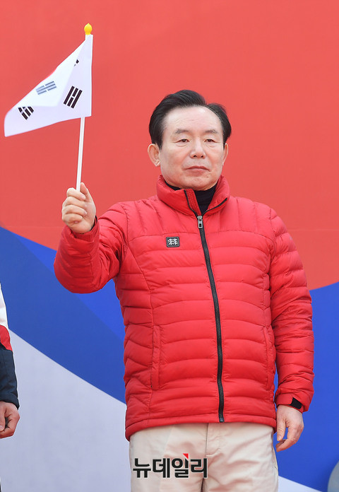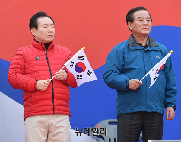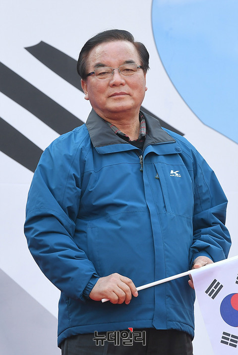정갑윤 자유한국당 의원, 이인제 전 의원이 4일 오후 2시 대한문 광장에서 열린 대통령탄핵기각을위한국민총궐기운동본부(탄기국) 제16차 태극기 집회에 참석했다.