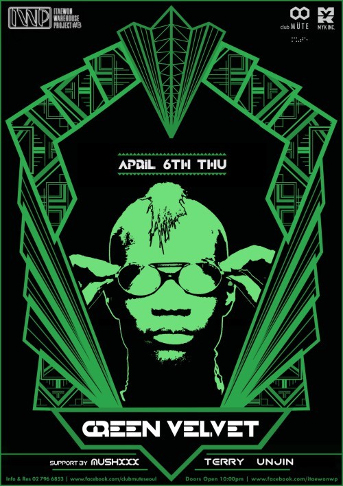 시카고 하우스 뮤직의 레전드 그린 벨벳(Green Velvet)이 4월 6일 클럽 뮤트에서 첫 내한공연을 연다.이는 국내외 실력파 아티스트들과 함께 언더그라운드 일렉트로닉 댄스 뮤직 신과 문화를 대중과 소통하기 위한 IWP(Itaewon Warehouse Project)의 세 번째 프로젝트이다.그린 벨벳은 미국 댄스 뮤직 신의 대부이자 변화와 도전의 아이콘이다. 그는 한 가지 장르에 안주하지 않고 하우스에서 테크노까지 다양하고 수준 높은 음악 세계를 선보이고 있다.장르와 스타일에 따라 자신의 이름을 달리하며 활동해 그린 벨벳 외에도 카즈미어, 지노 비토리, 지오 보그, 큐란 스톤, 하프 핀트 등으로 유명하다. 세계 유수의 페스티벌과 클럽파티, 라이브 라디오 방송에서 테크노 장르를 대표하는 아티스트로 손꼽히며 섭외 1순위이기도 하다.이번 공연에서는 국내 실력파 아티스트인 머쉬(Mushxxx), 테리(Terry), 운진(Unjin)의 무대가 준비돼 있어 풍성한 일렉트로닉 댄스 뮤직 파티가 될 것으로 기대를 모은다.그린 벨벳의 내한공연은 지난 3일 정오부터 인터파크 티켓에서 한정된 수량의 스페셜 얼리버드 티켓을 단독 판매하고 있다. 스페셜 얼리버드 티켓은 공연 입장권과 음료 한 잔이 포함됐다.