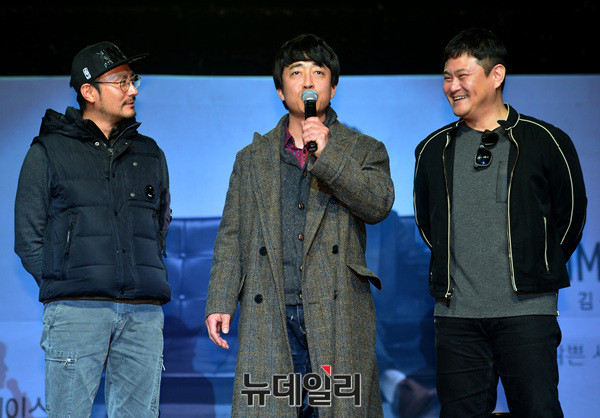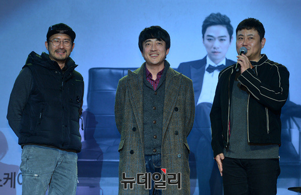 배우 임형준, 장혁진, 김진수가 6일 오후 서울 마포구 하나투어브이홀에서 열린 정규 2집 '여로(旅路)' 발매 기념 쇼케이스에 참석해 김선주를 응원하고 있다.'여로'는 작곡가 김민진과 편곡가 이영준이 프로듀서를 맡았다.
