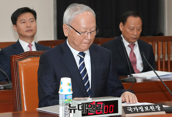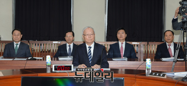 이병호 국정원장이 7일 오전 국회에서 열린 정보위원회 전체회의에 참석해 회의 시작을 기다리고 있다. (사진=사진공동취재단)