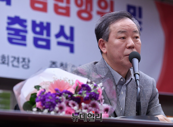 김평우 변호사가 7일 오후 한국프레스센터에서 열린 '특검 및 검찰의 인권침해 불법수사 조사단' 출범식에서 질의에 답하고 있다.
