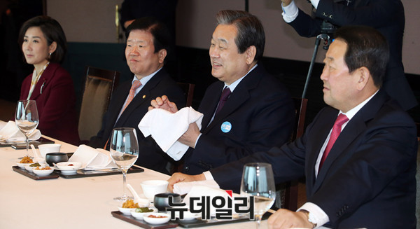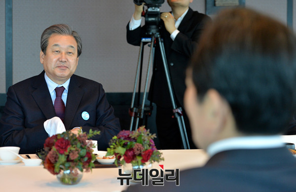 김무성 바른정당 의원이 9일 오후 서울 여의도 63스퀘어 내 한 식당에서 정세균 국회의장 주체로 열린 여야 중진의원 오찬 회동에 참석해 앉아 있다.