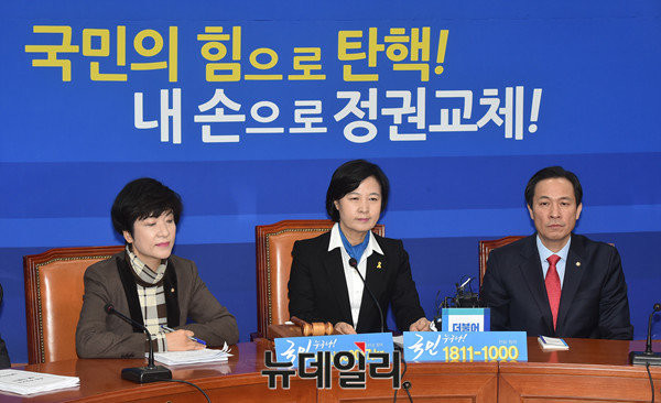 추미애 대표는 이날 헌재 결정 직후 특별성명문을 통해 "정치권에 고한다. 헌법재판소의 결정에 모두가 절대 승복해야 할 것"이라고 주장했다.