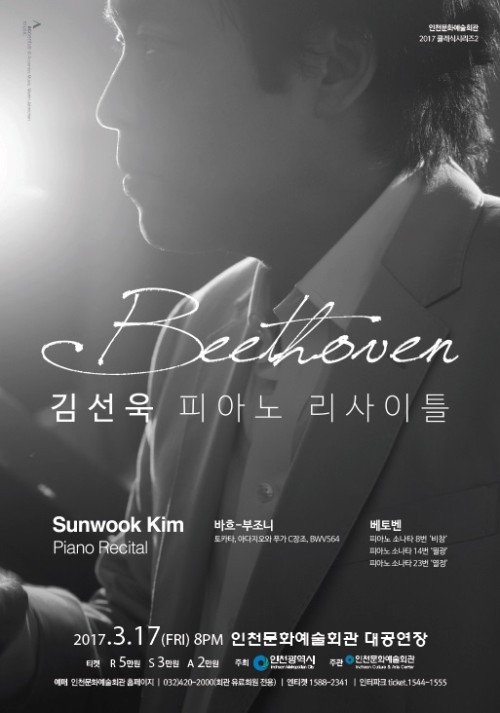'젊은 거장' 피아니스트 김선욱(29)이 베토벤으로 관객들을 만난다.30대를 바라보는 문턱에 선 김선욱은 오는 17일 오후 8시 인천문화예술회관 대공연장에서 피아노 리사이틀을 연다.이번 독주회에서는 대중적으로 가장 사랑 받는 베토벤 피아노 소나타 8번 '비창', 14번 '월광', 23번 '열정'을 들려준다. 이에 한 달 앞서 독일 악첸투스 레이블로 발매된 김선욱의 세 번째 앨범 수록 작품이기도 하다.김선욱은 음반으로 발매된 레퍼토리를 선보이는 이유에 대해 "음반처럼 치고 싶은 마음은 전혀 없다"고 밝혔다. 레코딩의 성과는 '순간을 박제한 것'일뿐 실황 연주에서는 또 다른 묘미의 접근과 깊이를 보여주겠다는 의도다.가장 통속적인 레퍼토리로 독주회를 결심한 까닭은 베토벤과 그의 건반 음악에 드리워진 클리셰(Cliché : 고정관념)을 걷어내기 위함이다. '베토벤 3대 피아노 소나타'로 통칭되는 '비창, 월광, 열정'은 상업적으로 해석될 여지가 많다.그는 "비창, 월광, 열정 같이 대중적인 레퍼토리는 꾸미고 과장하는 연주가 많다. 그래서 이 곡들을 해보고 싶었다"고 말했다.'김선욱 피아노 리사이틀'은 인천문화예술회관 홈페이지, 상설예매처(032-420-2000,), 엔티켓(1588-2341)에서 예매 가능하다. 관람료는 2만~5만원.