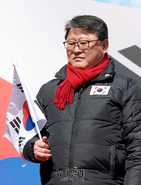 헌법재판소의 탄핵 심판 인용 결정난 10일 오전 안국역 일대에서 열린 태극기집회에 참석한 조원진 의원이 인용 선고 소식을 듣고 충격에 빠져있다.