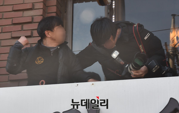 [포토] 웃으며 말리는 사진기자, 날아오는 주먹