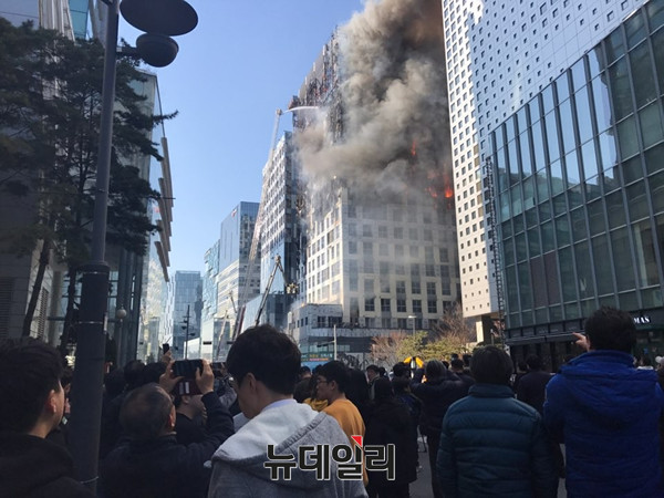 18층까지 골조 공사가 이뤄진 이 건물 3층에서 발화한 불이 벽을 타고 올라가 7개층을 전소시킨 것으로 알려졌으나 정확한 화재 원인은 파악되지 않은 상태다. -