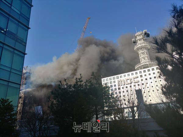 10일 오후 상암MBC 사옥 바로 옆에 위치한 신축 오피스텔에서 화재가 발생해 MBC 전직원이 건물 밖으로 대피하는 소동이 벌어졌다.