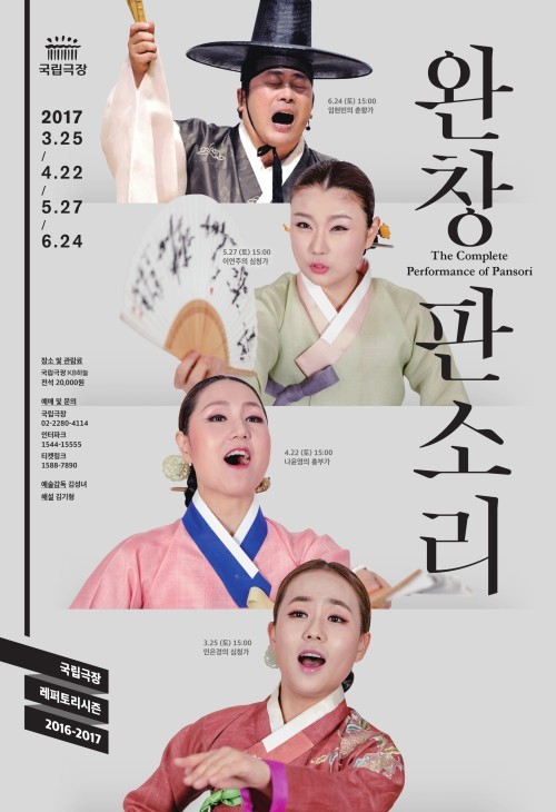 국립극장 '완창판소리'는 판소리 다섯 바탕을 짧게는 3시간에서 길게는 8~9시간까지 완창(完唱)하는 무대인만큼 박동진 명창을 비롯해 성창순, 박송희, 성우향, 남해성, 송순섭, 안숙선, 신영희 등 당대 최고의 명창들만이 올랐다.