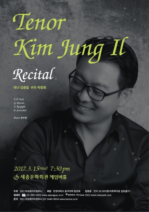 이탈리아를 중심으로 유럽무대에서 활동 중인 테너 김중일이 귀국 독창회를 연다.오는 15일 오후 7시 30분 세종문화회관 체임버홀에서 개최되는 이번 독창회는 아름다운 선율의 가곡들과 우리에게 친숙한 오페라 등 다양한 레퍼토리를 준비했다.가곡 토스티의 '이별의 노래', 푸치니 '땅과 바다'·'태양과 사랑', 레스피기 '설경'·'비'·'안개' 등과 오페라 토스카 중 '별은 빛나건만', 오페라 투란도트의 '공주는 잠 못 이루고' 등을 들려준다.한양대학교 성악과를 졸업한 김중일은 이탈리아 로마 산타 체칠리아 국립음악원 졸업 후 조교 과정을 이수했으며, 세계 최고의 무대인 이탈리아 라 스칼라 극장에서 주역으로 데뷔했다.이후 푸치니 '나비부인'의 핑커톤, '토스카'의 까바라도씨, '라 보엠'의 로돌포 등 다수 오페라에 출연했고, 이탈리아 통일 150주년을 기념해 개최된 부세토 베르디 국제콩쿠르 2위를 비롯해 세계 유수의 콩쿠르에서 수상한 바 있다.테너 김중일 귀국 독창회는 세종문화티켓, 인터파크에서 예매할 수 있으며 문의는 라보체아츠컴퍼니(02-3446-9654)로 하면 된다. 전석 2만원이다.[사진=라보체아츠컴퍼니]