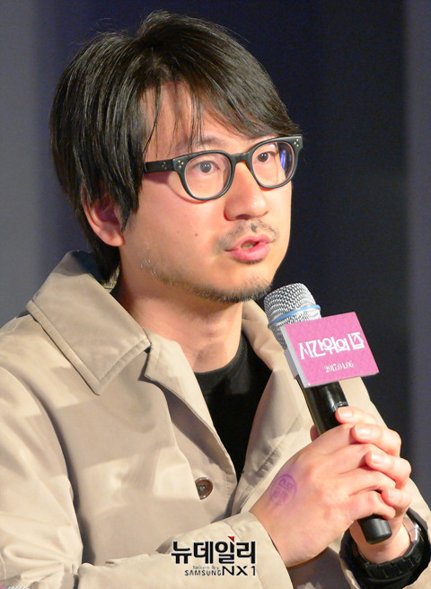 임대웅 감독이 14일 오전 서울 광진구 롯데시네마 건대입구에서 열린 영화 '시간위의 집' 제작보고회에 참석해 인사말을 전하고 있다.