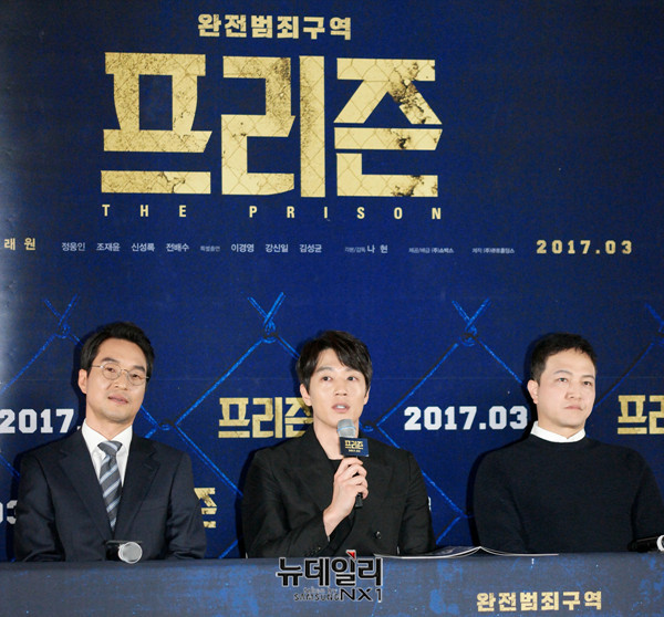 배우 김래원이 14일 오후 서울 중구 메가박스 동대문에서 열린 영화 '프리즌' 언론시사회에 참석해 인사말을 하고 있다. 이날 언론시사회에는 나현 감독을 비롯해 배우 한석규, 김래원, 정웅인, 조재윤, 신성록이 참석했다.